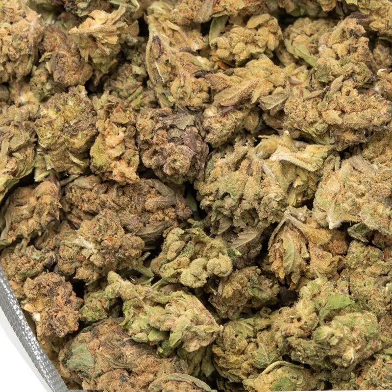 Maui Wowie is straight up sunshine in flower form. Born from Hawaiian and an unknown parent this Sativa-dominant hybrid gained its name from the island where it thrived naturally. Known for keeping spirits high and minds clear, THC usually lands between 20–23% and 1-2% CBD, offering steady strength. Maui Wowie or Maui Waui buds show loose, airy structure with lime-green leaves and bright golden pistils. A thin frost coats the surface, giving it a fresh look. The aroma carries tropical fruits, citrus peel, and light floral notes. The best part is this strain straight up tastes like sweet pineapple and smooth fruit tones. Limonene, pinene, and myrcene are the dominant terpenes.
